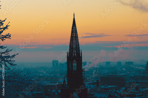 Fototapeta premium Freiburg MÜNSTER im winter Sunset