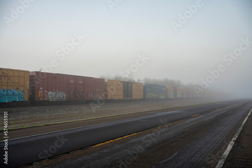 © Henry, Naklejka premium freight cargo train railroad track side of road