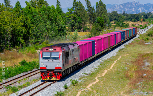 © anuvat, Fototapeta premium freight Container train num 552 at Saraburi, Thailand