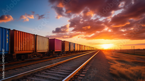 Fototapeta premium Freight Containers on Tracks at Sunset