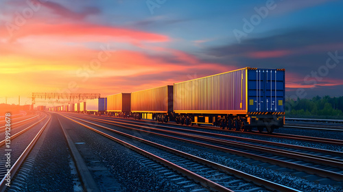 © Parsudi, Fototapeta premium Freight Train At Sunset