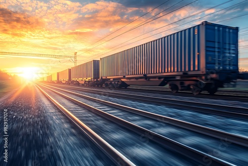 © Pumapala, Fototapeta premium Freight Train at Sunset