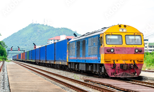 © boygek, Fototapeta premium freight train container loading container Bangkok Port