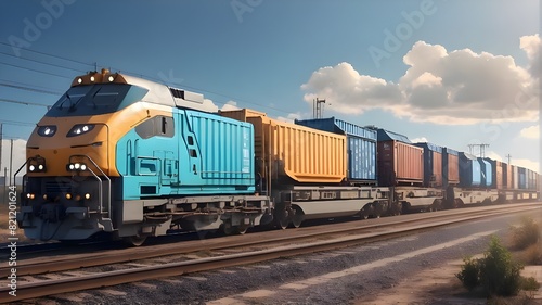 Fototapeta premium freight train equipped with generative artificial intelligence and cargo...