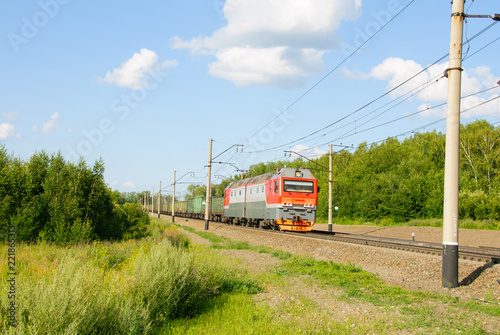 © ktv144, Naklejka premium Freight train in countryside at summer day