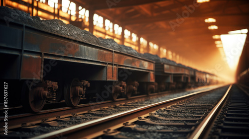 Obraz premium Freight Train Loaded with Coal in Warm Light