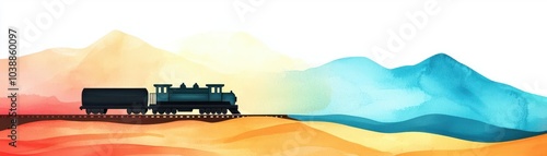 © Natalia, Obraz premium Freight train moving through a landscape, long supply routes, Watercolor style