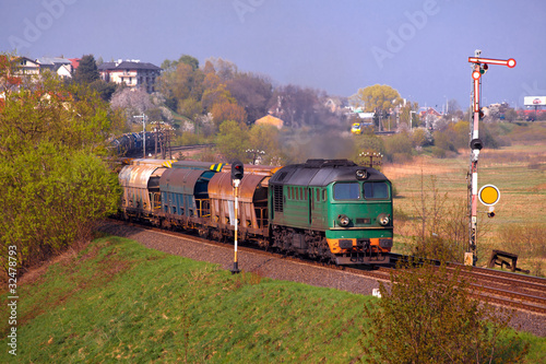 © remik44992, Obraz premium Freight train passing the hilly landscape