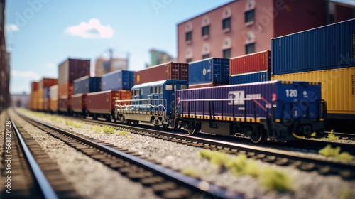 © javier, Fototapeta premium Freight Train Passing Through Urban Area: Containers Rolling Past Buildings