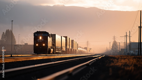 © Kateryna, Fototapeta premium Freight train powering through a vast landscape with cargo