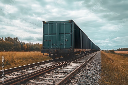 © Pumapala, Fototapeta premium Freight Train Rolling Through a Rural Landscape