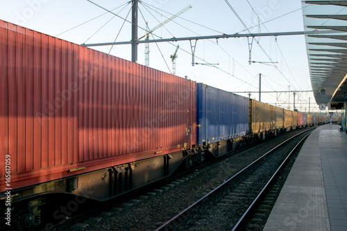 © Jopstock, Fototapeta premium Freight train with cargo containers