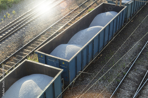 © Jan Kravа, Fototapeta premium Freight train with white gravel, top view