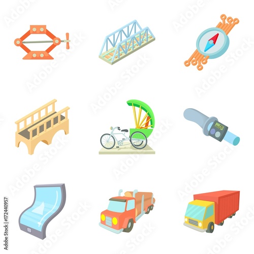 © ylivdesign, Naklejka premium Freight transport icons set, cartoon style