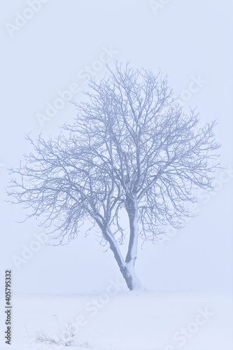 © Gina Bromá, Fototapeta premium Freistehender Baum im Schneesturm