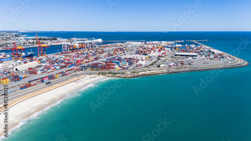 © Michael, Fototapeta premium Fremantle shipping docks in Perth, Western Australia seen from the sky