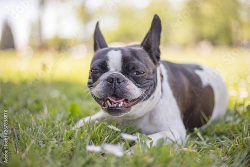 © SHELL, Fototapeta premium French bull and boston terrier mix dog