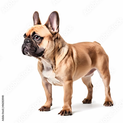 © Toseef, Obraz premium French bulldog dog breed standing against white background, AI Generated
