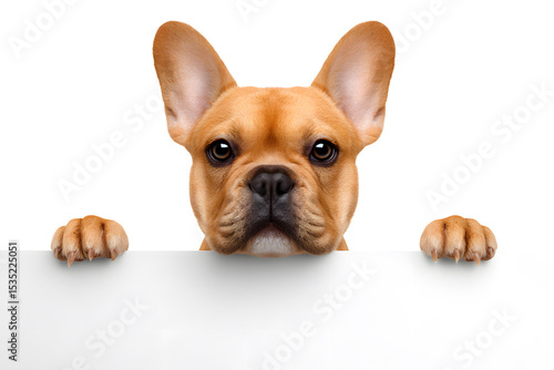© Oksana_Latysheva, Obraz premium French Bulldog Holding Blank Banner Isolated on White