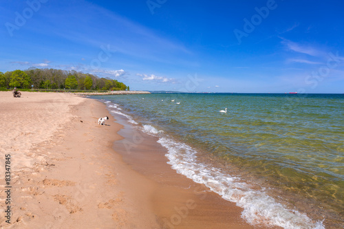 © Patryk Kosmider, Fototapeta premium French bulldog on the beach of Baltic sea