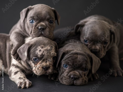 © Cavan, Obraz premium French bulldog puppies studio shot over a black background