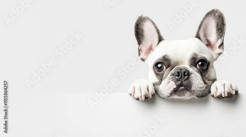 Fototapeta premium French Bulldog resting with paws on a blank surface adorable pet portrait...