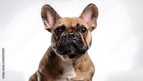 Fototapeta premium French Bulldog sitting with ears perked up on a clean white background,...