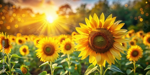 © Adisorn, Fototapeta premium French Countryside Sunflower Field, Bright Yellow Flowers, Cooking Oil Production, Bokeh Effect