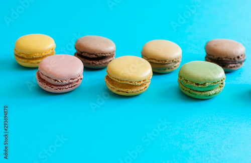 © Santiago, Obraz premium French macarons dessert on a blue background