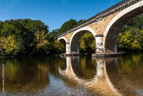 © joanncampbell, Fototapeta premium French medieval stone three arched bridge over the Dordogne