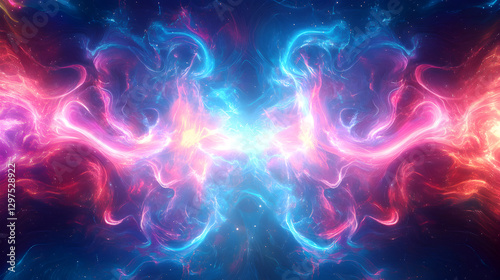 © Nattavee, Fototapeta premium frequency pattern with vibrant blue and pink energy waves