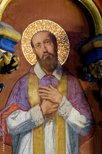 Naklejka premium Fresco (19th century) of St. Francis de Sales or Saint François de Sales. Saint and Doctor of the Catholic Church. Founder of the Order of the Visitation of Holy Mary (Visitandines). .