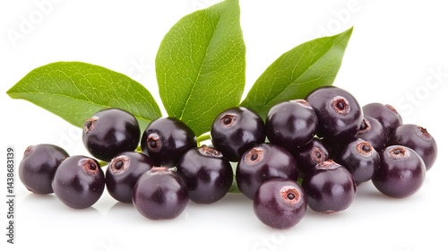 © Abdul, Fototapeta premium Fresh Acai Berries with Green Leaves Closeup Studio Shot