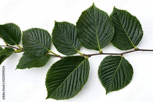 © ckybe, Fototapeta premium Fresh alder twigs with lush green leaves on white background for nature designs.