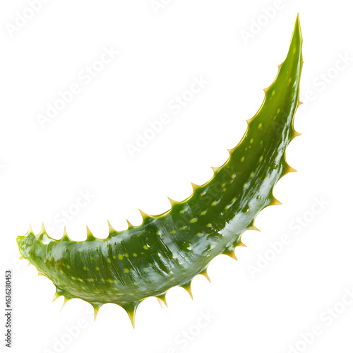 © Mitchel, Naklejka premium Fresh Aloe Vera Leaf with Spikes on White Background