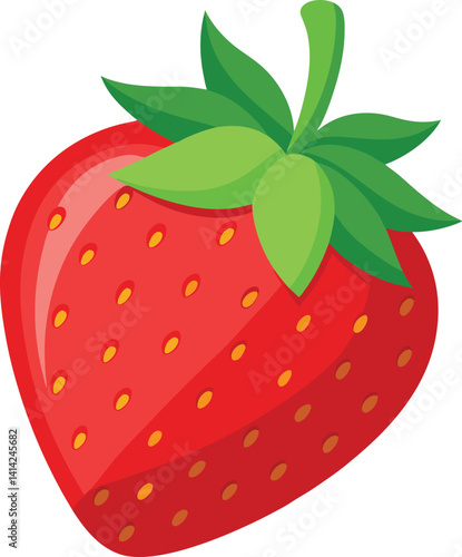 © Hridu Arts, Obraz premium Fresh and ripe strawberry with green leaves, vector illustration.