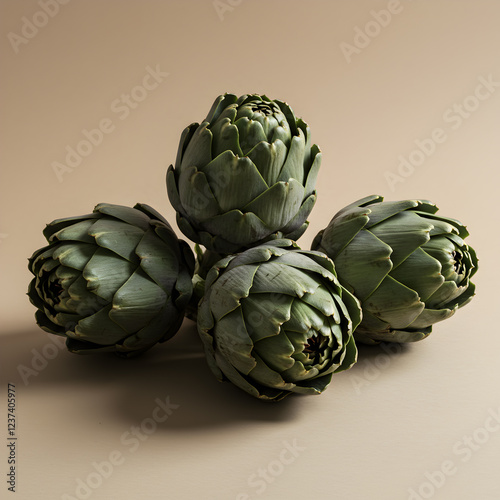 Obraz premium Fresh And Vibrant Artichokes Displayed In A Natural Arrangement On An...