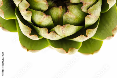 Fototapeta premium Fresh artichoke, macro shot on white with copy-space