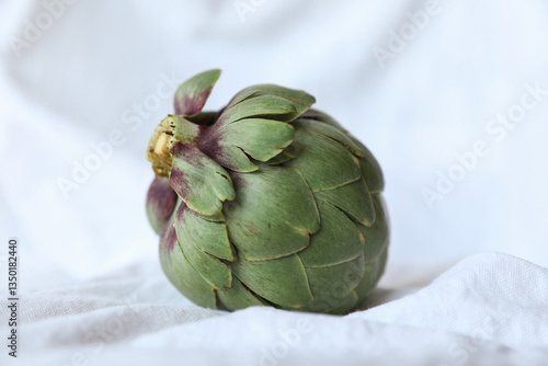 © face_reader_img, Obraz premium Fresh artichoke on white background. Whole green artichoke mockup. Horizontal.