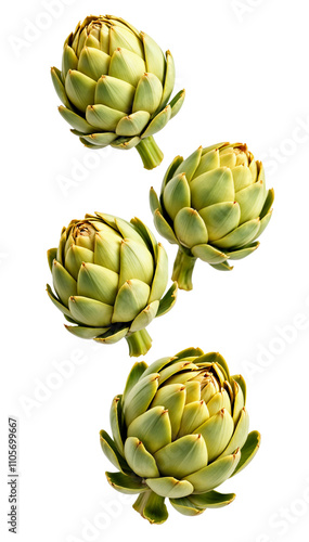 Fototapeta premium Fresh Artichokes Arranged Against a Dramatic transparent Background