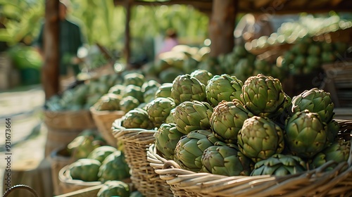 © Alexander, Obraz premium Fresh artichokes in baskets harvest products
