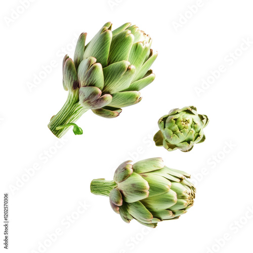 © Karina, Fototapeta premium Fresh artichokes isolated on white background