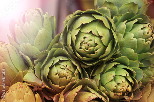 © hafakot, Obraz premium Fresh artichokes on a farmers market