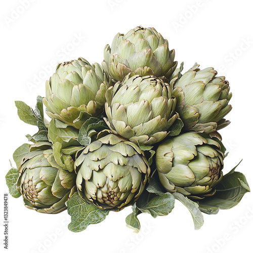 © Shape Png, Obraz premium Fresh Artichokes with Green Buds Isolated on Transparent Background