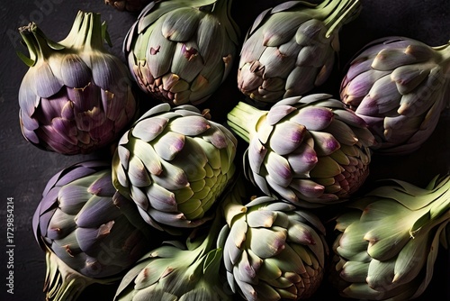 Fototapeta premium Fresh artichokes with greenpurple tones