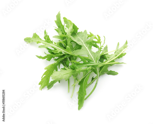 © New Africa, Obraz premium Fresh arugula leaves isolated on white, top view