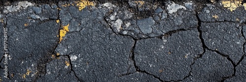 Obraz premium Fresh Asphalt Surface. High Angle View of Textured Pavement in Dark Hues for Background Use
