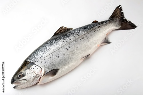 Naklejka premium Fresh Atlantic Salmon Fish on White Background
