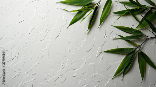 © vachiraphan, Naklejka premium Fresh bamboo leaves on textured white background
