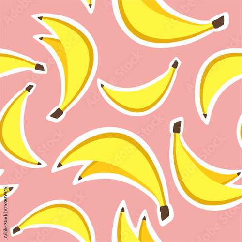 © Talirina, Fototapeta premium Fresh bananas background. Hand drawn overlapping backdrop. Colorful wallpaper vector. Seamless pattern with fruits. Decorative illustration, good for printing